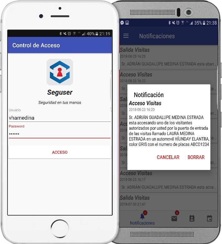 Notificaciones instantáneas de entradas y salidas de sus visitas.